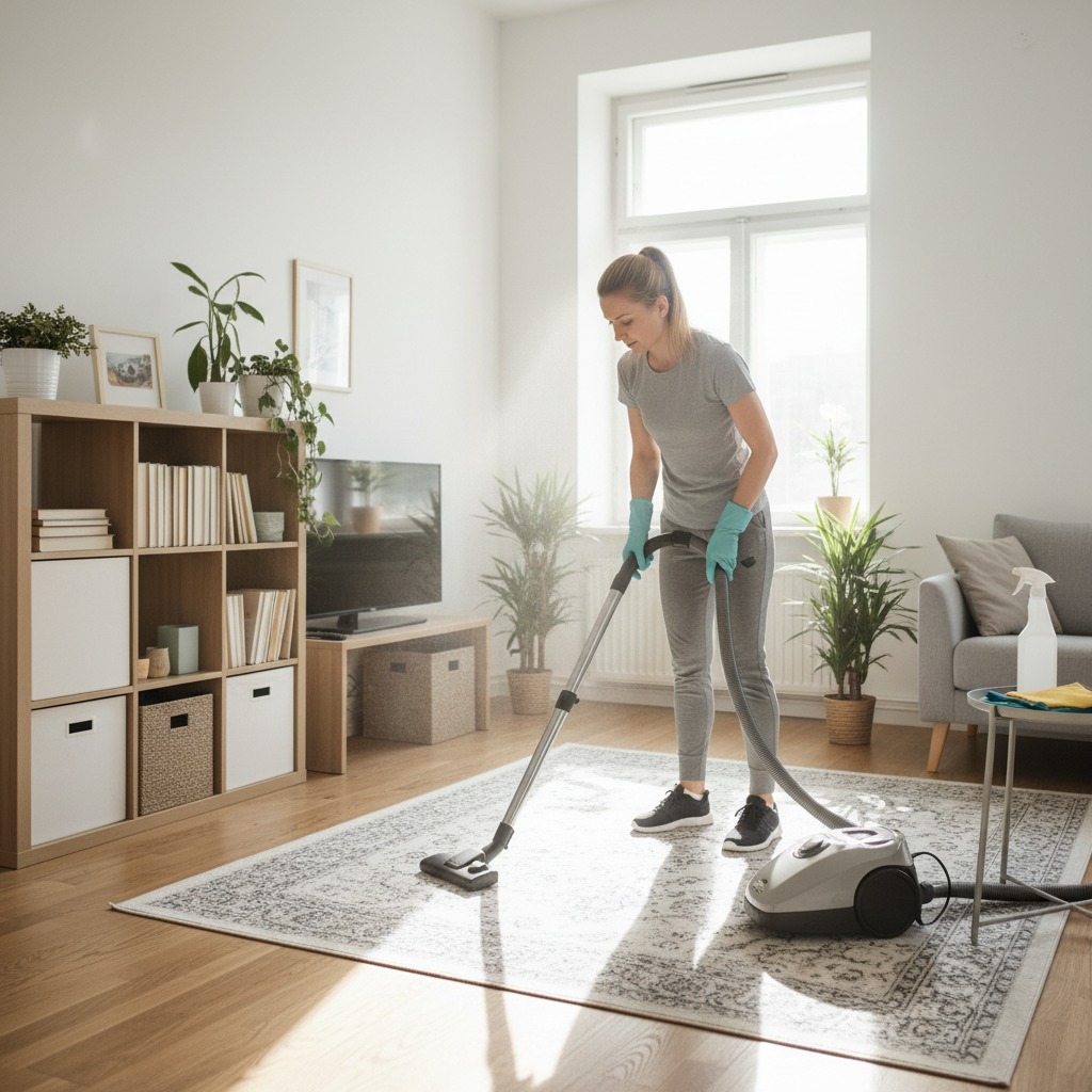 Lihtsam kodukoristus – tolmu pühkimine, põrandate pesu, nõud, pesu, üldine korrashoid. Kasutan kliendi puhastusvahendeid.